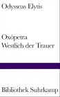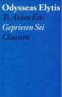 Im Deutschen liegen vor: Sieben nächtliche Siebenzeiler. Bläschke, St. Michael 1966. To Axion Esti, Gepriesen sei. Claassen, Hamburg/Düsseldorf 1969. Ausgewählte Gedichte. Suhrkamp, Frankfurt/M. 1980. Lieder der Liebe. Suhrkamp, Frankfurt/M. 1981. Maria Nepheli. Ein szenisches Gedicht. Suhrkamp, Frankfurt/M. 1981. Sieben nächtliche Siebenzeiler. Orion, Bläschke, St. Michael 1981. To Axion Esti, Gepriesen sei. Fischer, Frankfurt/M. 1981. Glänzender Tag, Muschel der Stimme. Volk und Welt, Berlin 1982. Neue Gedichte. Suhrkamp, Frankfurt/M. 1984. Vier Gedichte aus Tagebuch eines niegesehenen April. Edition phi, Echternach 1984. Köder für niemand. Edition phi, Echternach 1988. Oxópetra / Westlich der Trauer. Späte Gedichte. Suhrkamp Verlag, Frankfurt/M 2001. To Axion Esti. Gepriesen Sei. Elfenbein Verlag, München 2001.